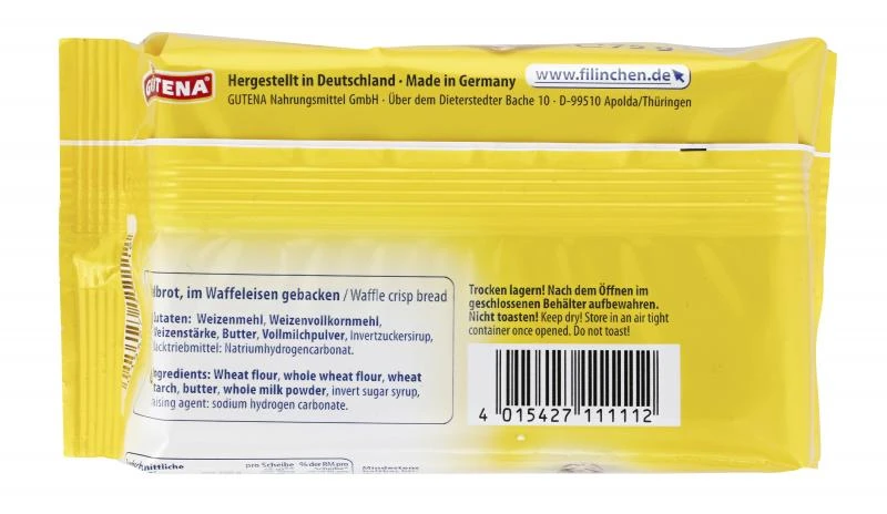 Waffelbrot, im Waffeleisen gebacken. Ganz gleich, ob zum Frühstück, zum Kaffee oder als knuspriger Snack für zwischendurch – Filinchen schmeckt mit süßem oder herzhaften Belag.