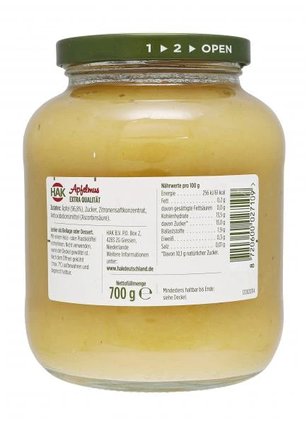 Für dieses Apfelmus wählt Hak die besten und aromatischsten Äpfel aus und bereitet sie nach einer speziellen Hak-Rezeptur zu. Damit erhält Hak ein Apfelmus von allerbester Qualität mit einem vollendeten Geschmack.