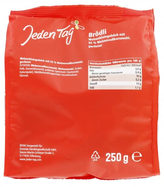 Weizenkleingebäck mit 55% Weizenvollkornmehl, geröstet.
