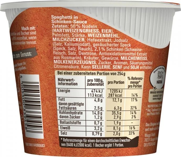 Maggi 5 Minuten Terrine Spaghetti In Cremiger Schinkensauce